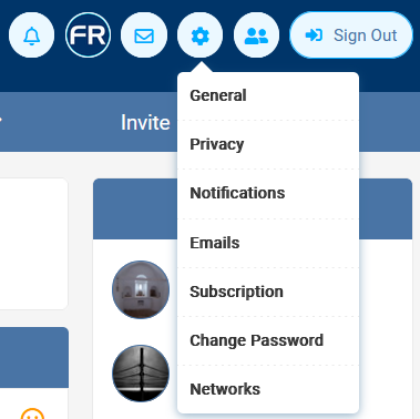 Updates (Notifications), My Profile, Messages, Settings, Friend's Requests and Sign Out